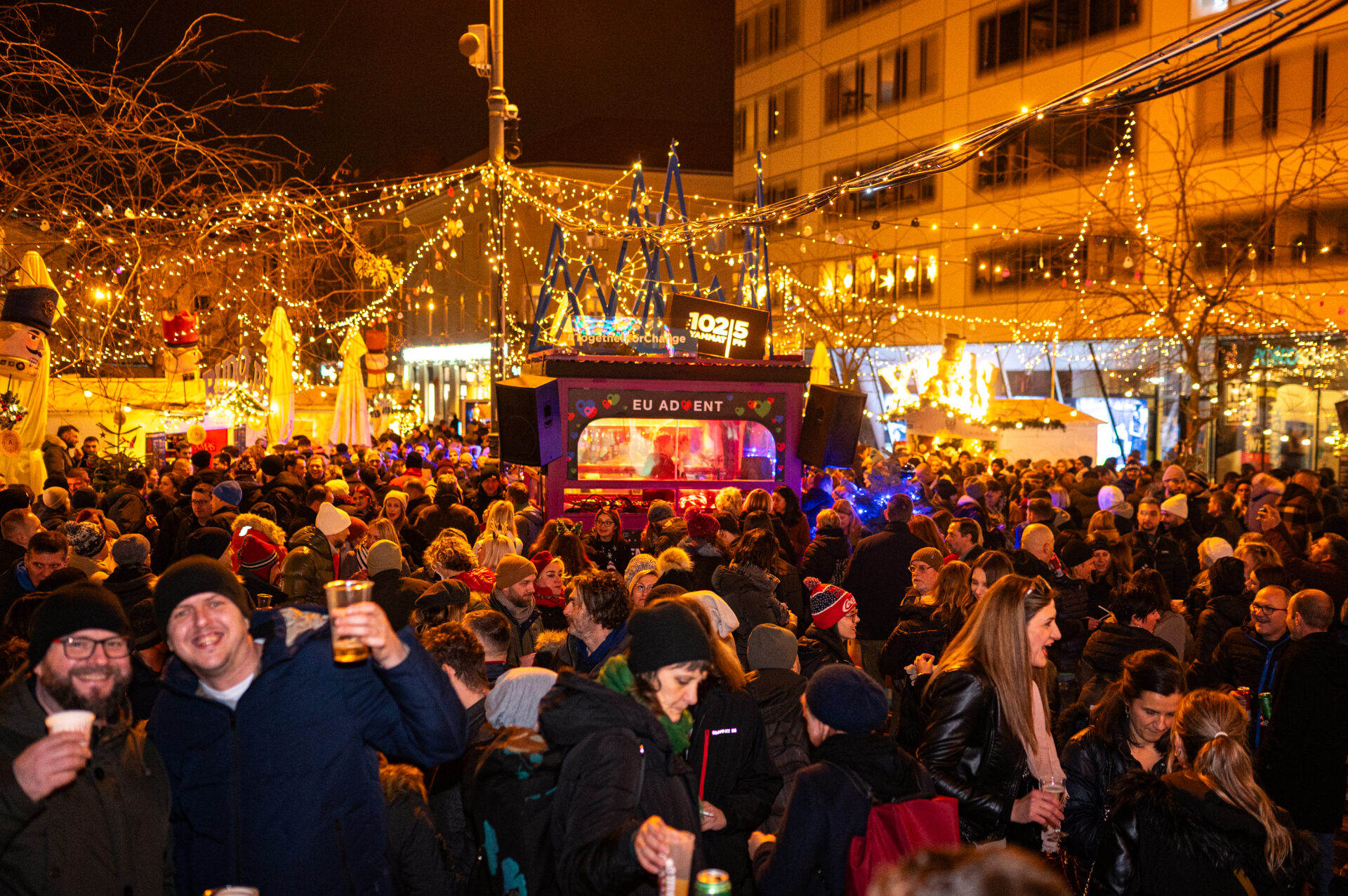 Europski trg pretvara se u EU Advent, božićni prostor gdje klasične melodije susreću moderne zvukove, a svaki kutak priča svoju priču kroz glazbu, domaće delicije, kazališne nastupe i humanitarne akcije.
